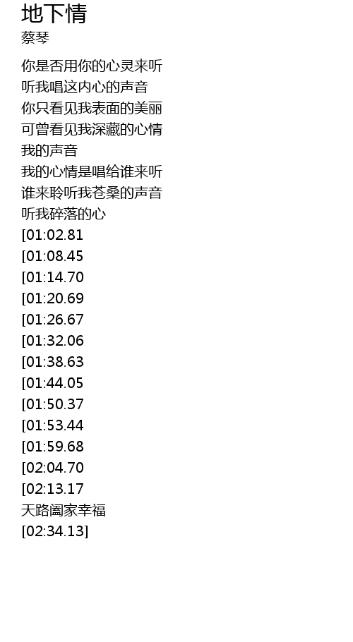 | [02:21.92] | 天路阖家幸福 |
