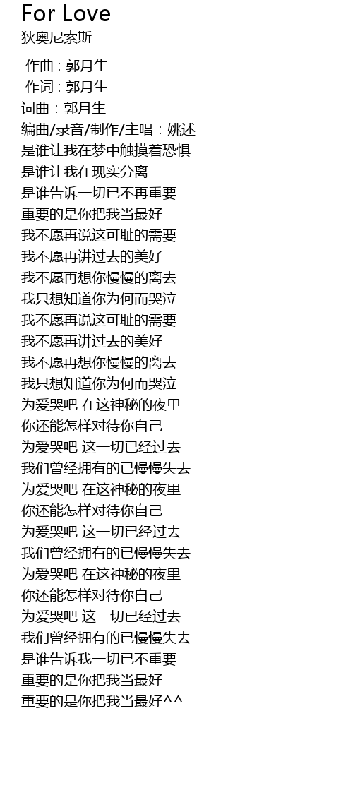 | [00:03.64] | 编曲/录音/制作/主唱:姚述 |