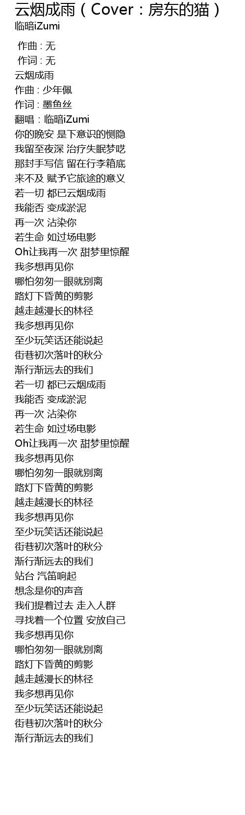 | [00:43.46] | 若一切 都已云烟成雨 |