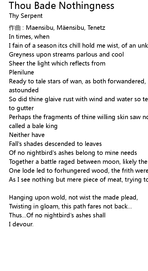 | Song | Thou Bade Nothingness |
