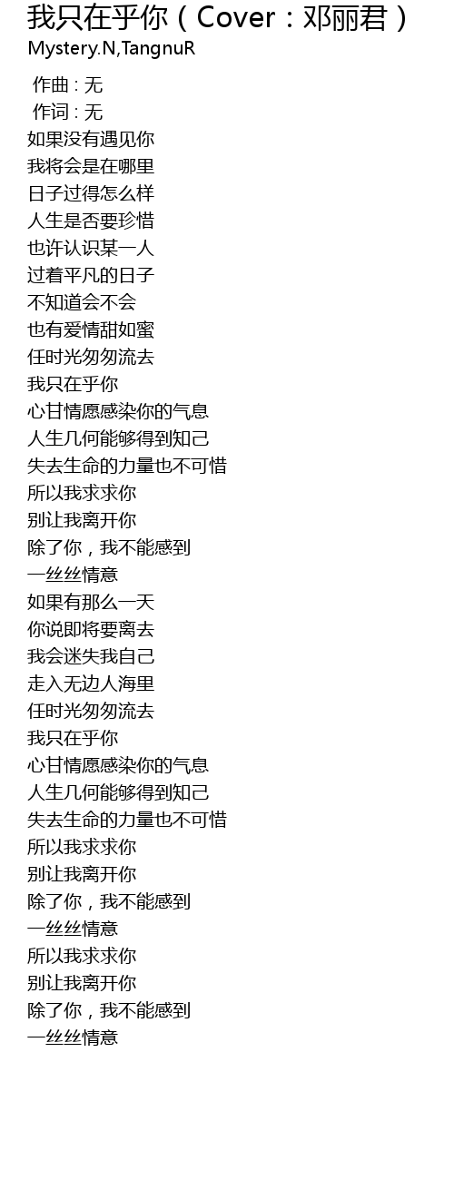 | [00:54.34] | wǒ zhī zài hū nǐ |