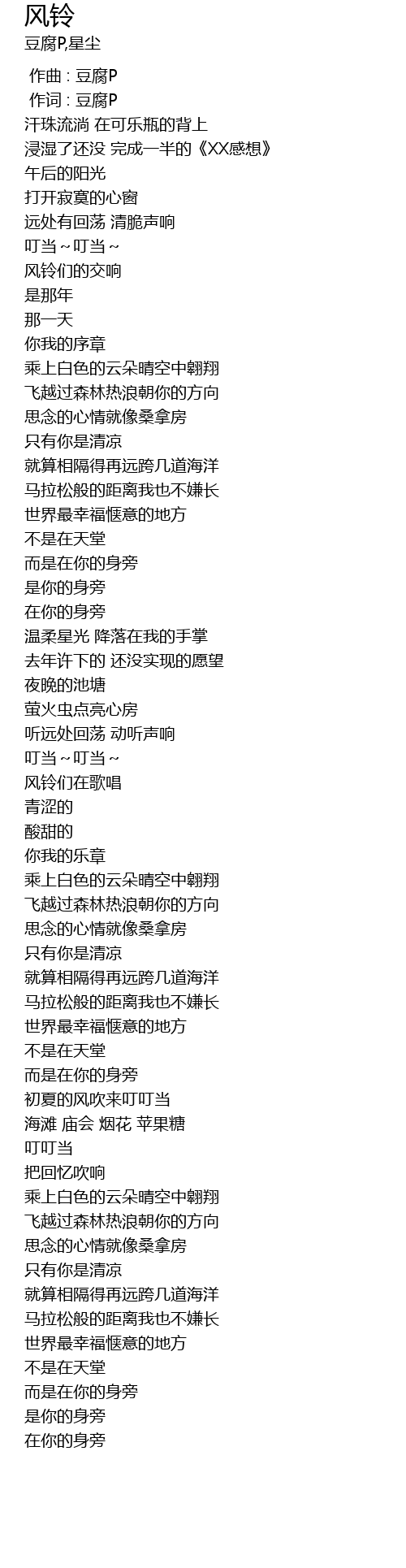 | [03:00.74] | 初夏的风吹来叮叮当 |