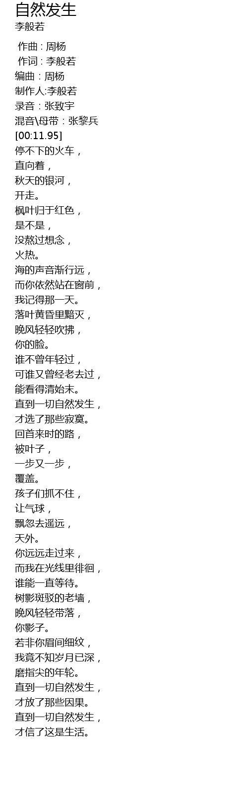 | [01:49.22] | zhí dào yī qiè zì rán fā shēng, |