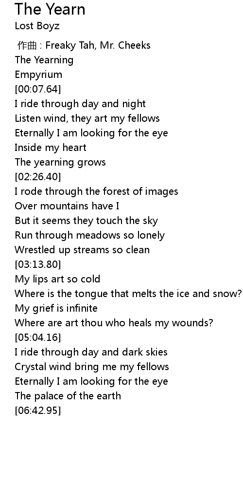 | [00:00.00] | 作曲 : Freaky Tah, Mr. Cheeks |
