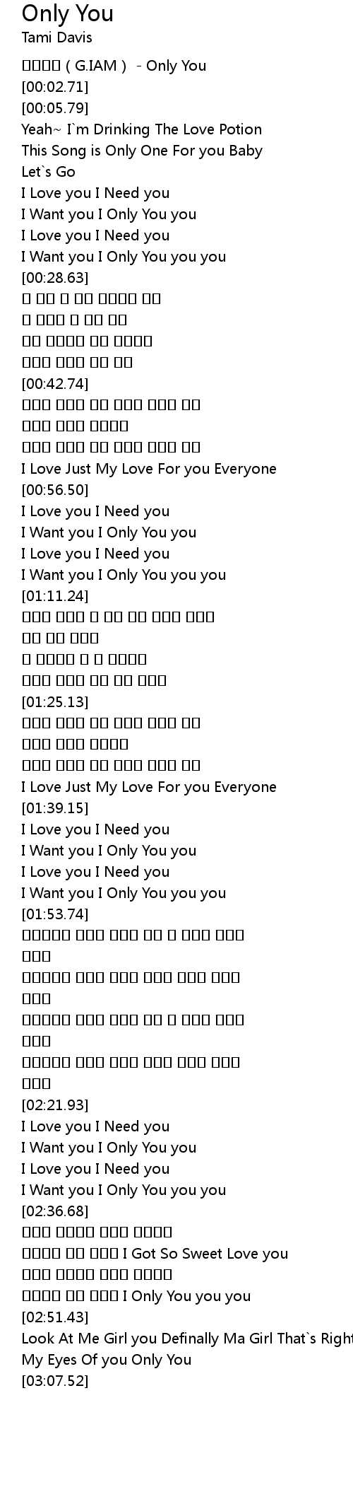 | [01:18.68] | 난 너뿐이야 오 난 너뿐이야 |