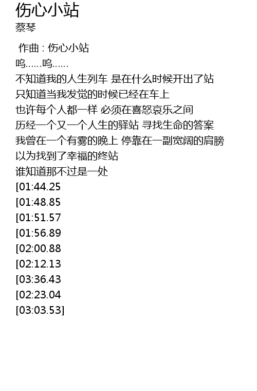 | [03:06.53][01:44.25] | 伤心的小站 |