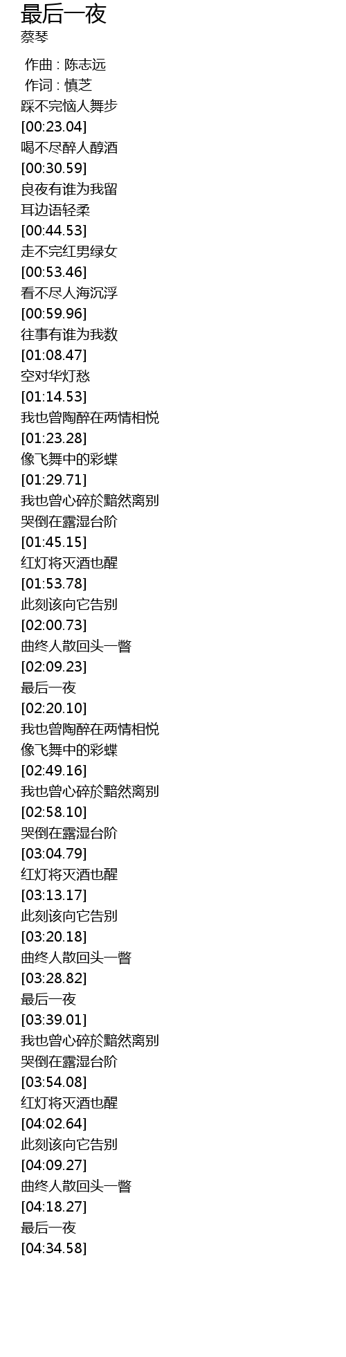 | [04:03.33] | ci ke gai xiang ta gao bie |