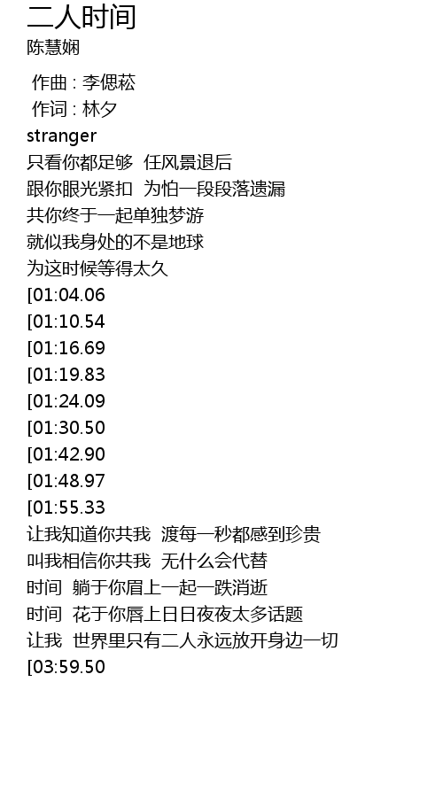 | [02:01.79] | 让我知道你共我 渡每一秒都感到珍贵 |