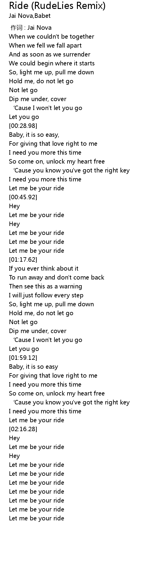 | [01:15.28] | Let me be your ride |