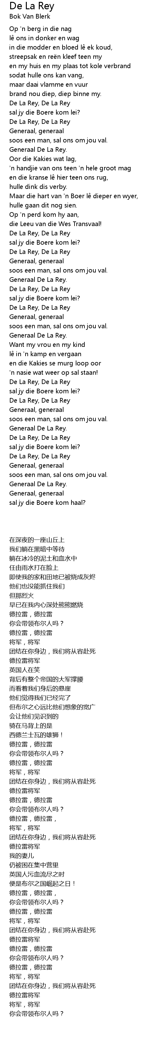 | [01:21] | Maar die hart van 'n Boer lê dieper en wyer, |