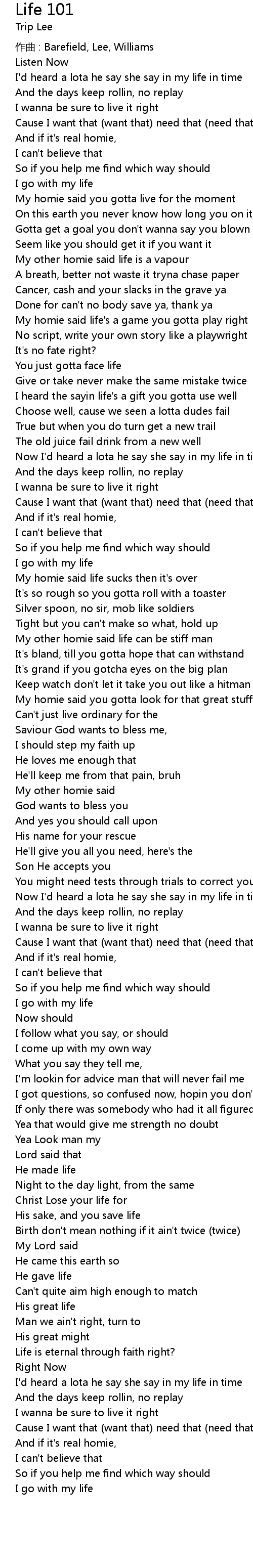 | My homie said life' s a game you gotta play right | |
