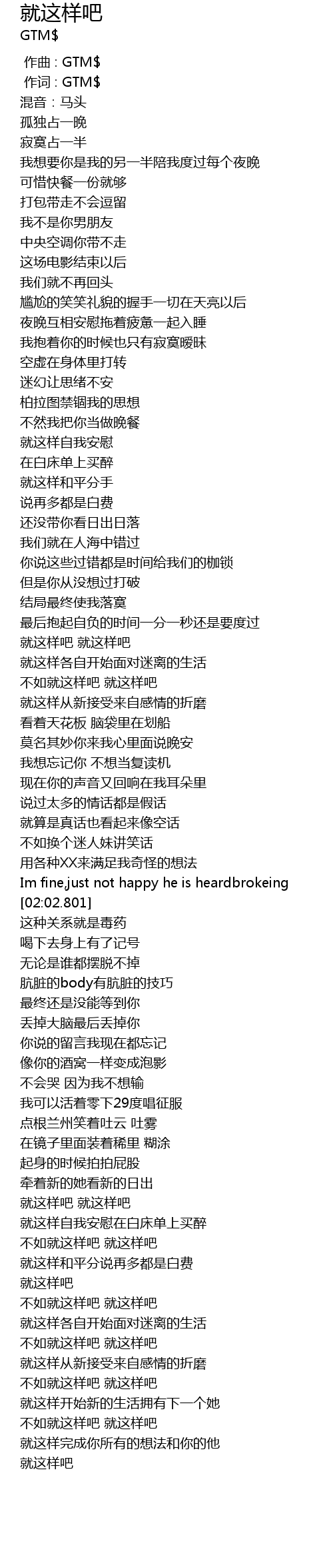 | [01:55.744] | Im fine,just not happy he is heardbrokeing |
