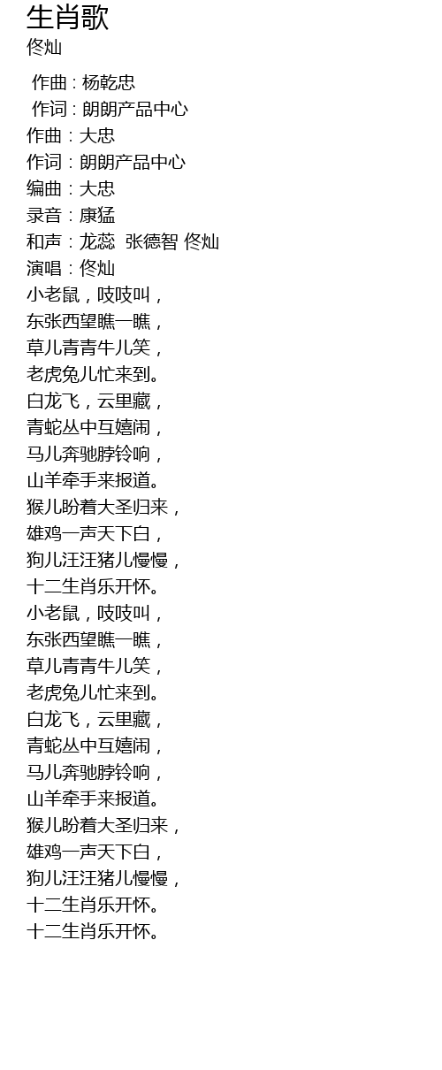| [02:00.000] | shí èr shēng xiào lè kāi huái. |