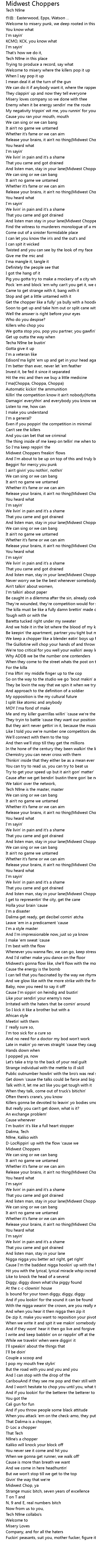| And listen man, stay in your lane Midwest Choppers Yelling my voice out loud | |