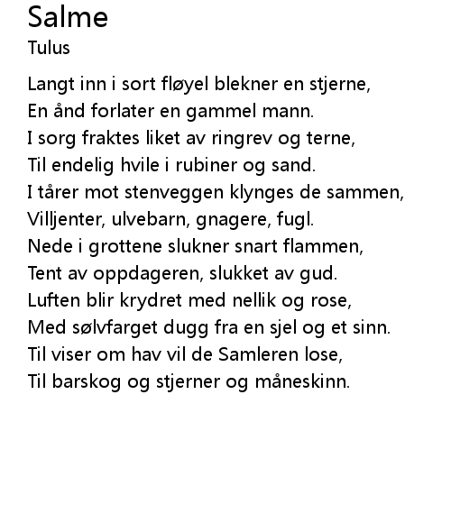 | Med sølvfarget dugg fra en sjel og et sinn. | |