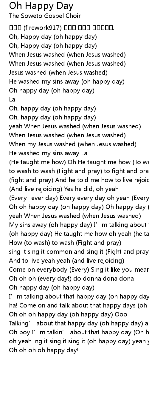 | Oh oh happy day oh happy day Oh happy day oh happy day | |