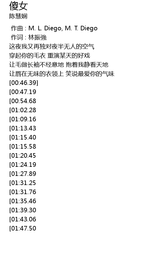 | [00:00.00] | 作曲 : M. L. Diego, M. T. Diego |