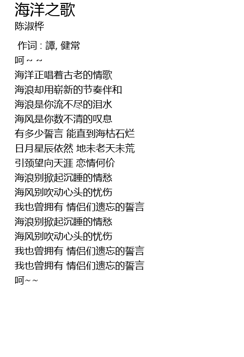 | [00:38.11] | 海洋正唱着古老的情歌 |
