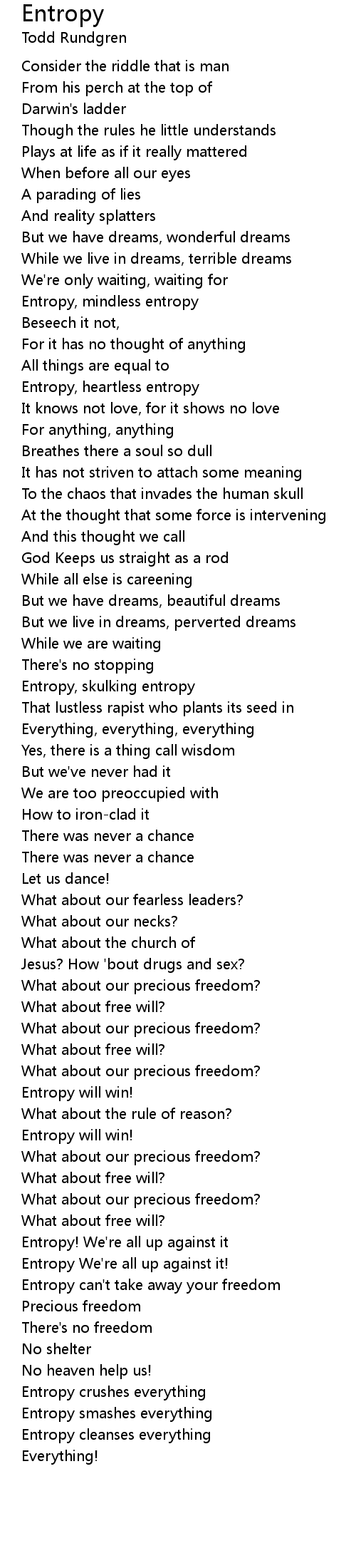 Entropy can't take away your freedom |