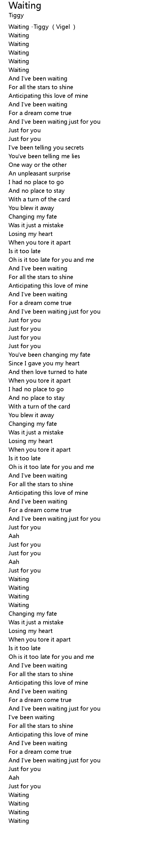 | [00:00.00] | Waiting -Tiggy (Vigel ) |