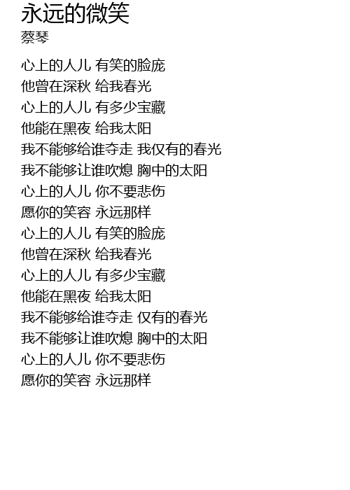 | [00:18.380] | 心上的人儿 有笑的脸庞 |