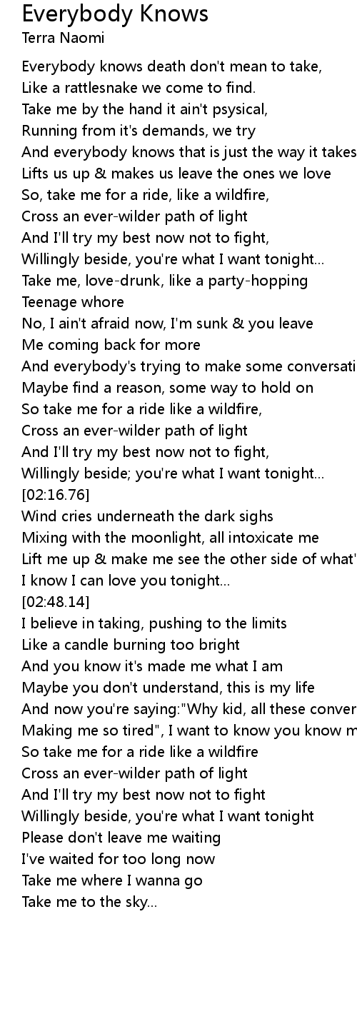 And everybody knows that is just the way it takes us |