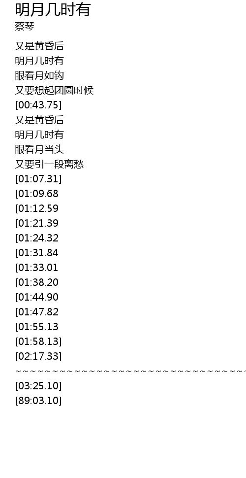 | [02:32.03][01:21.39] | 眼看月当头 |