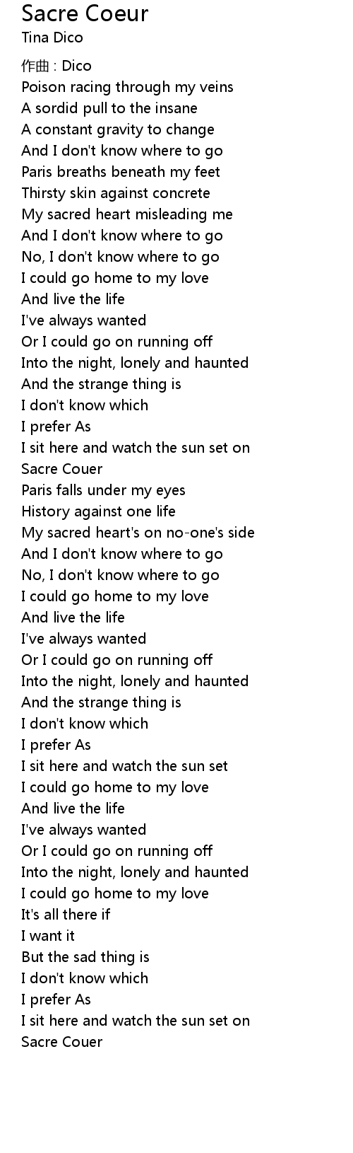 | Song | Sacre Coeur |