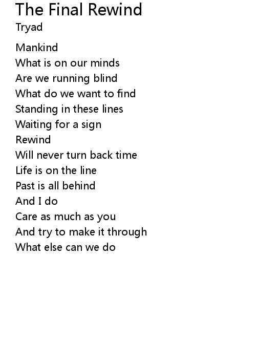 | Song | The Final Rewind |