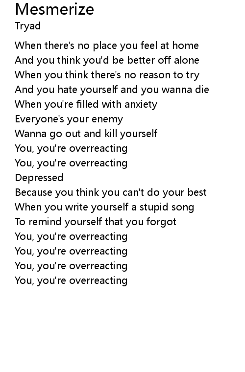 | You, you're overreacting | |