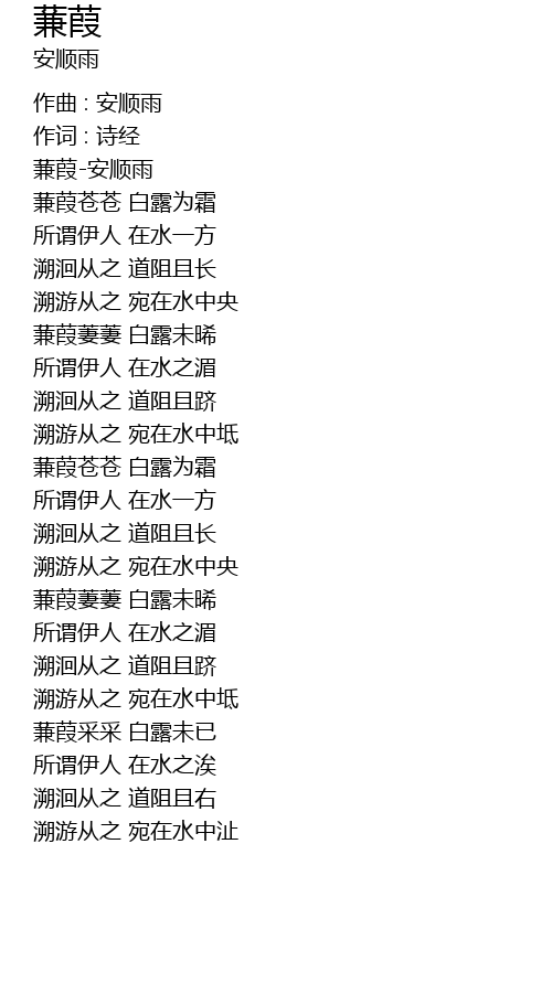| jiān jiā cǎi cǎi bái lù wèi yǐ | |
