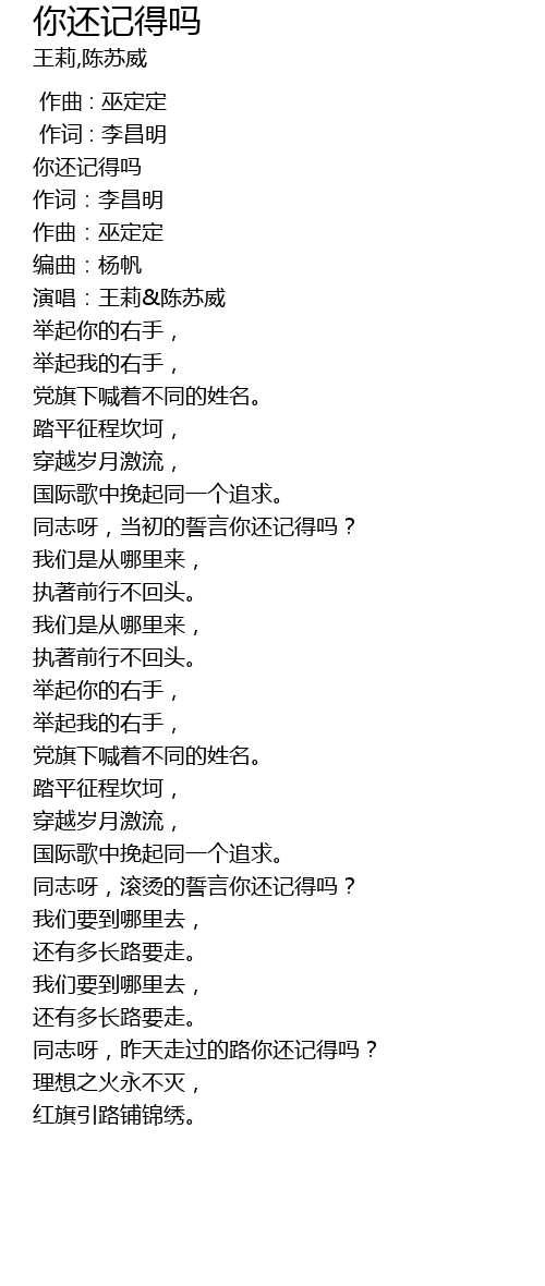 | [00:52.16] | 同志呀,当初的誓言你还记得吗? |