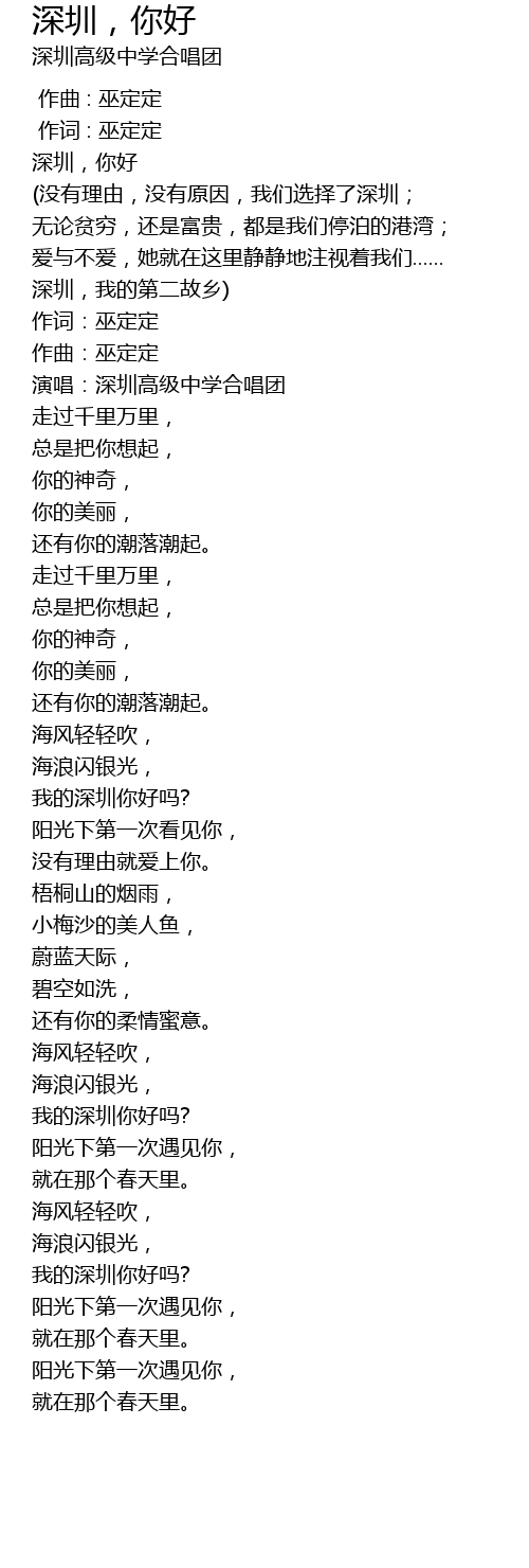 | [01:39.49] | 我的深圳你好吗? |