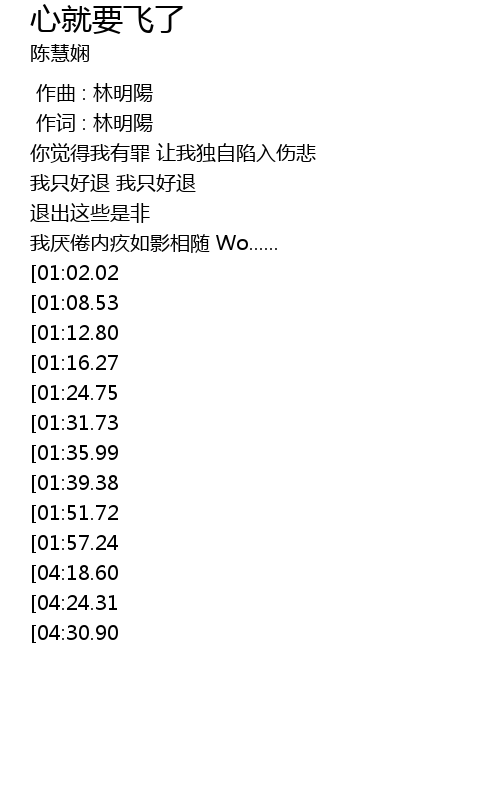 | [03:28.98][01:16.27] | wo zhi shi bu yuan zui zi ji bei er bu shi ai shang shui Wo...... |
