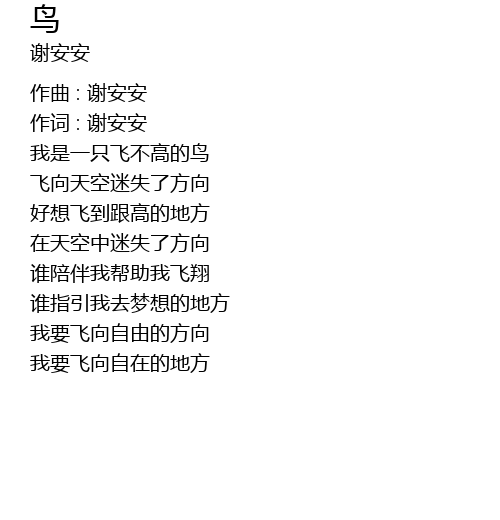 | wǒ shì yì zhī fēi bù gāo de niǎo | |