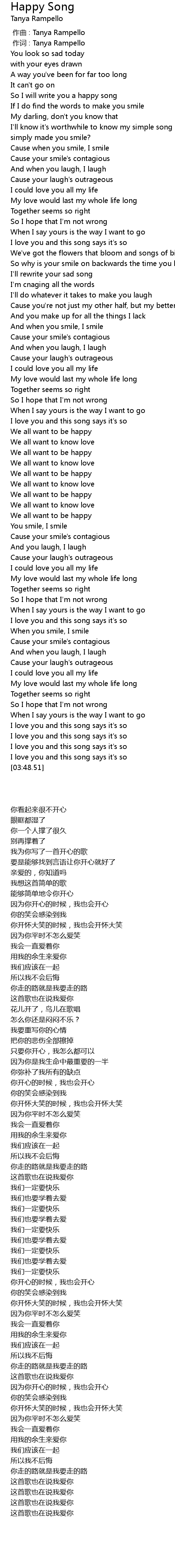 | [00:18.27] | So I will write you a happy song |
