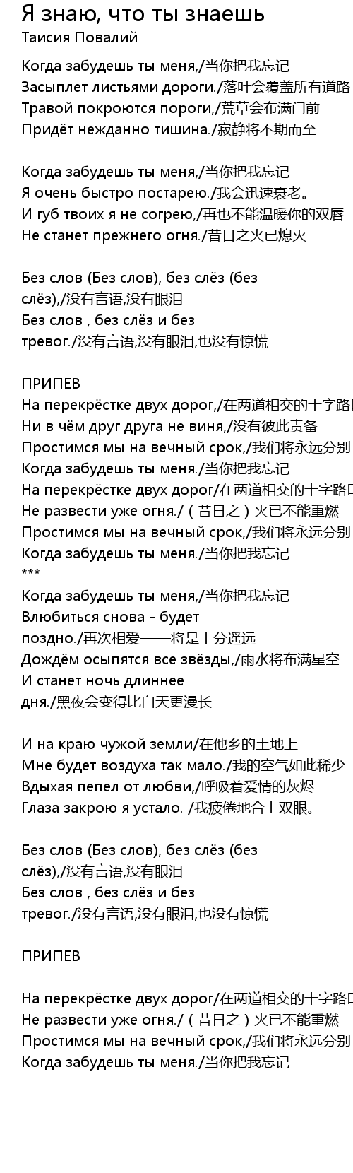 | Когда забудешь ты меня,/当你把我忘记 | |