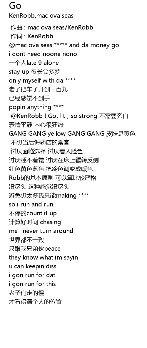 | [00:41.490] | KenRobb I Got lit, so strong bù xū yào páng bái |