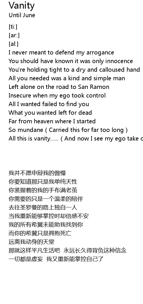 | [01:05.62] | All this is vanity......(And now I see my ego take control) |