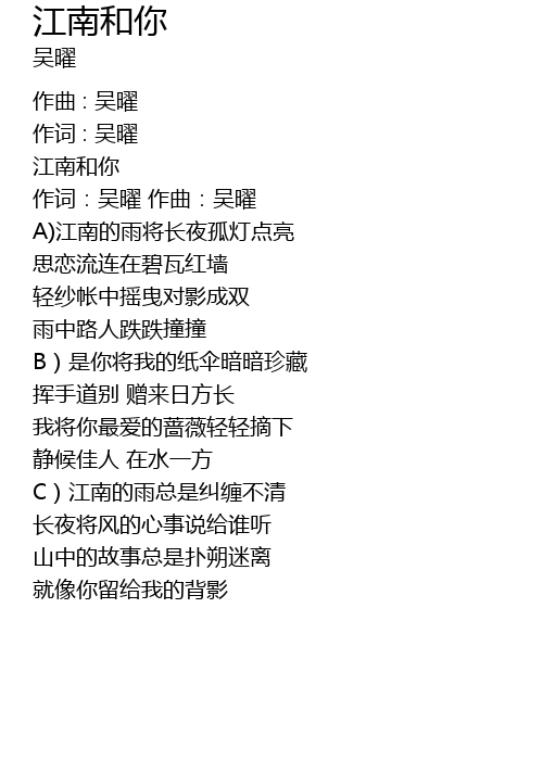| C jiāng nán de yǔ zǒng shì jiū chán bù qīng | |