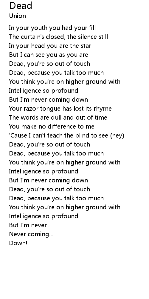 Dead, you're so out of touch |