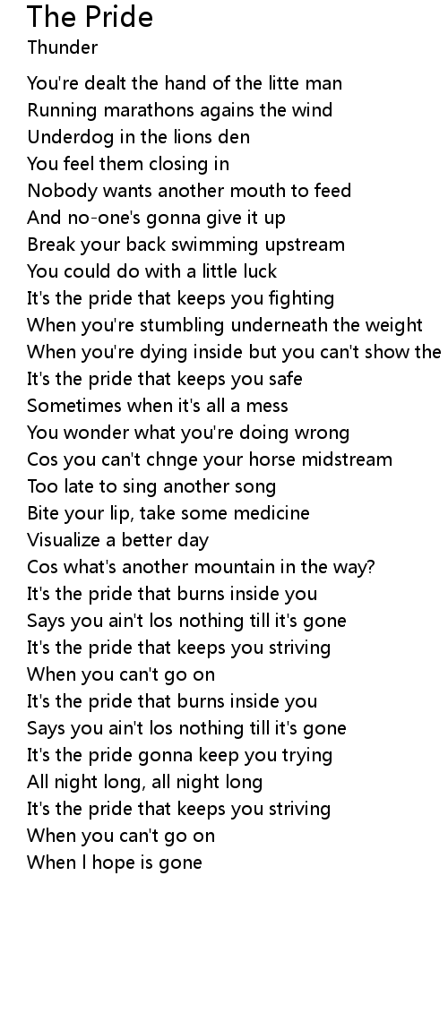 It's the pride that keeps you fighting |