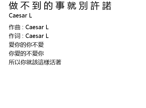 | Song | 做 不 到 的 事 就 別 許 諾 |