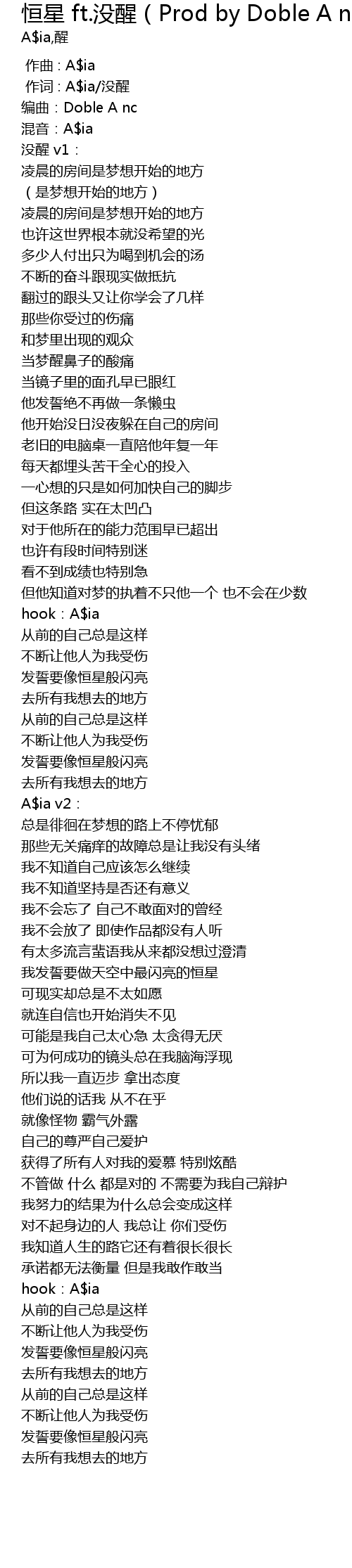 | [00:01.000] | 作词 : A$ia/没醒 |