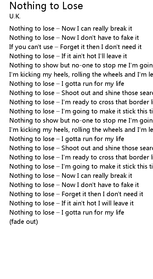 | Nothing to lose If it ain' t hot I' ll leave it | |