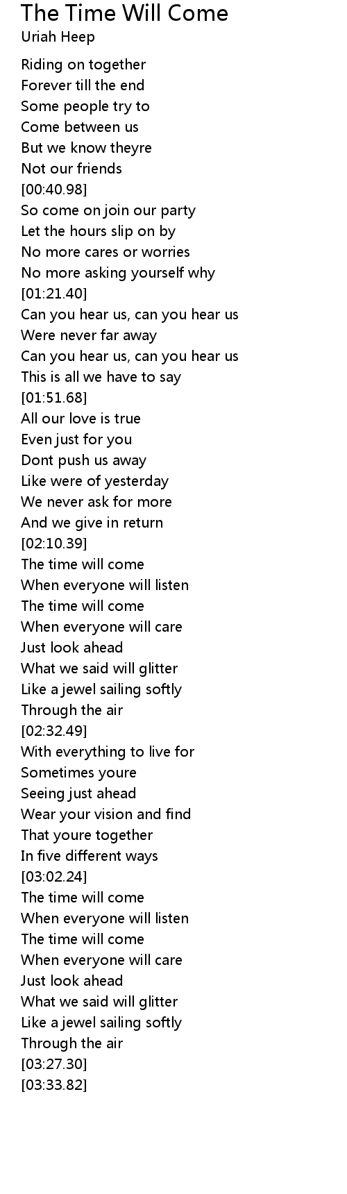 The time will come |