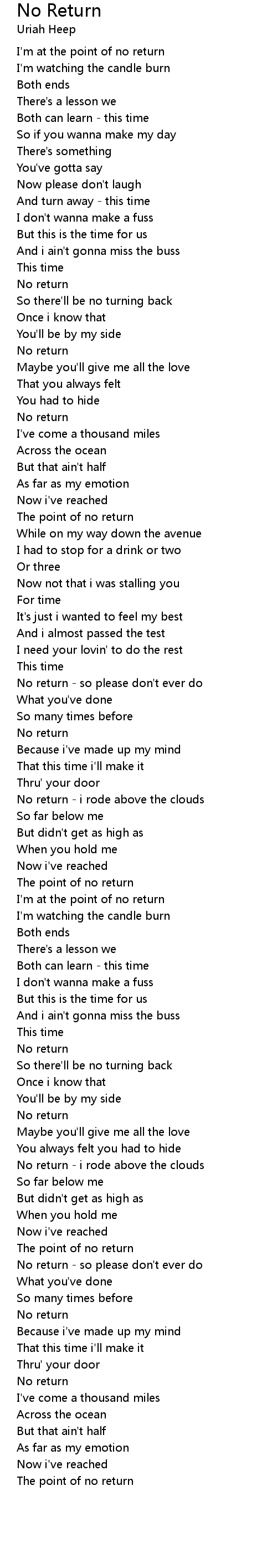 No return - i rode above the clouds |