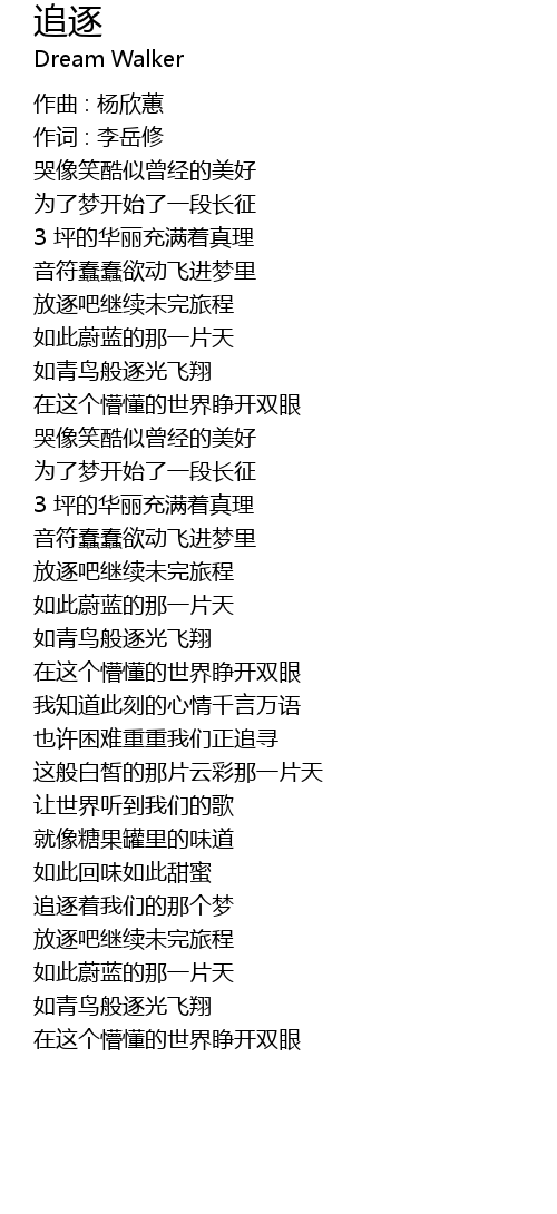 | zhuī zhú zhe wǒ men de nà gè mèng | |