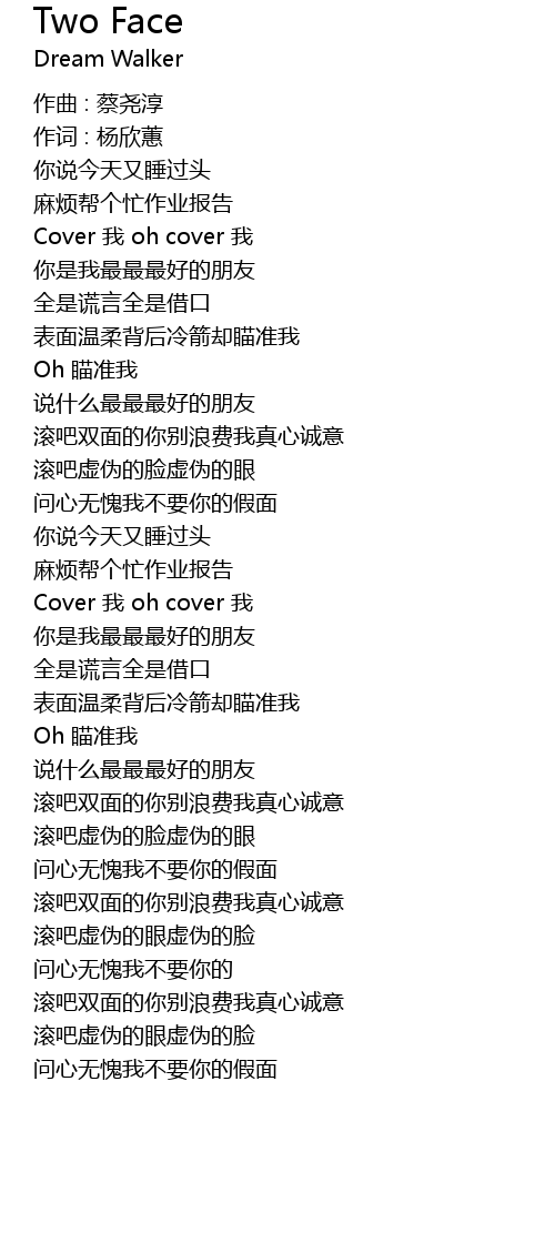 | wèn xīn wú kuì wǒ bú yào nǐ de jiǎ miàn | |