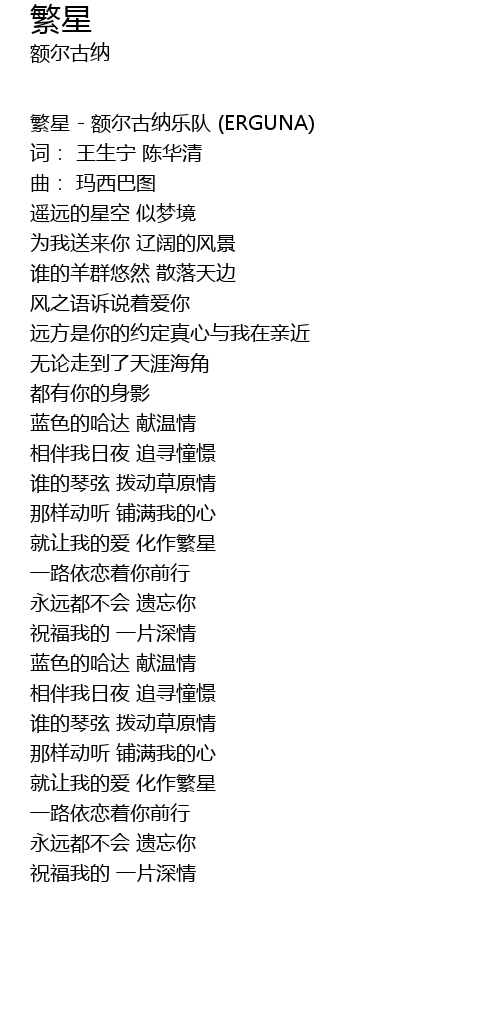 | 繁星 - 额尔古纳乐队 (ERGUNA) | |